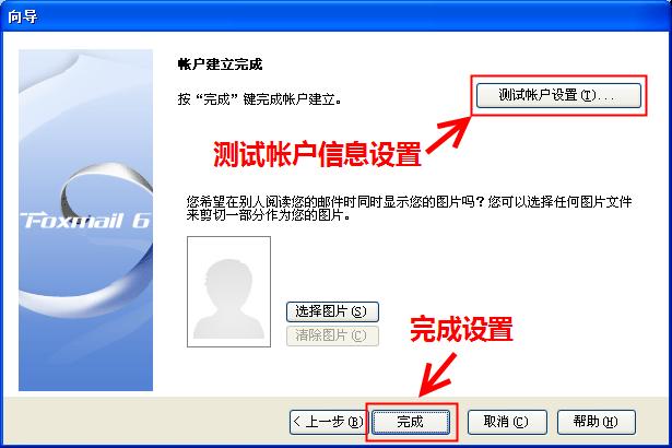 6.可以点击"完成",也可以点击"测试帐户设置"。如果点击"完成",则帐户设置完毕;如果点击"测试帐户设置",则进入下一步。